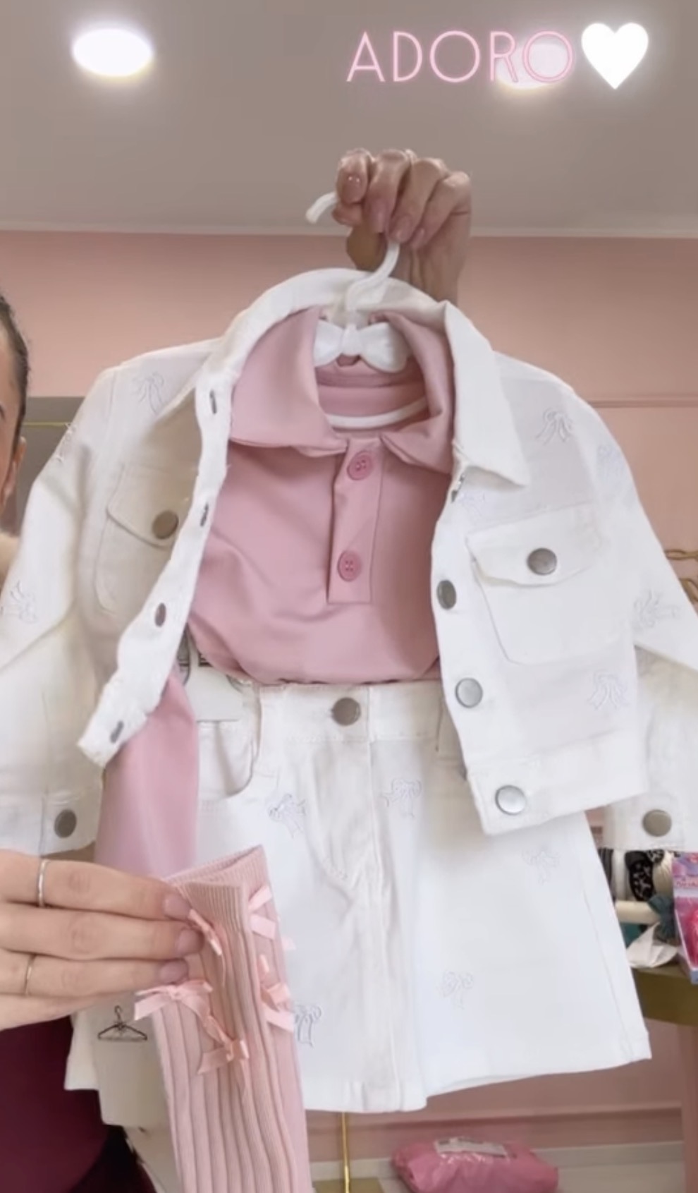 GIACCA E GONNA IN JEANS CON FIOCCHI RICAMATI